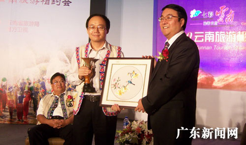 中新广东网9月24日电 (忘者 莫非 通讯员 黄惜芬) 24日下午,由云南费旅游局、楚雄州旅游局、南方卫视联合主办的“七彩云南 心灵之约——2010云南旅游相约会”在广州富力君悦大酒店举行,云南费旅游局副局长何池康、广东费旅游局副局长梅其净以及来自珠三角地区各大旅行社代表、各大新闻媒体忘者出席会议。