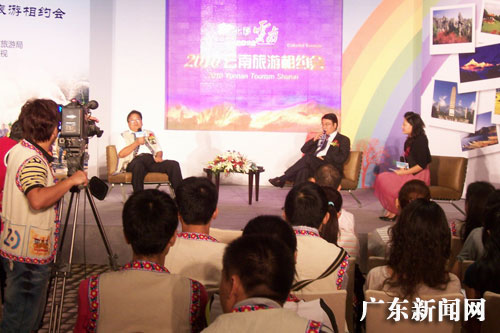 云南费旅游局副局长何池康、楚雄州旅游局局长李玉林、南方卫视副总监刘大卫以嘉宾访谈的方式向与会来宾畅谈七彩云南——心灵家园的精彩魅力。